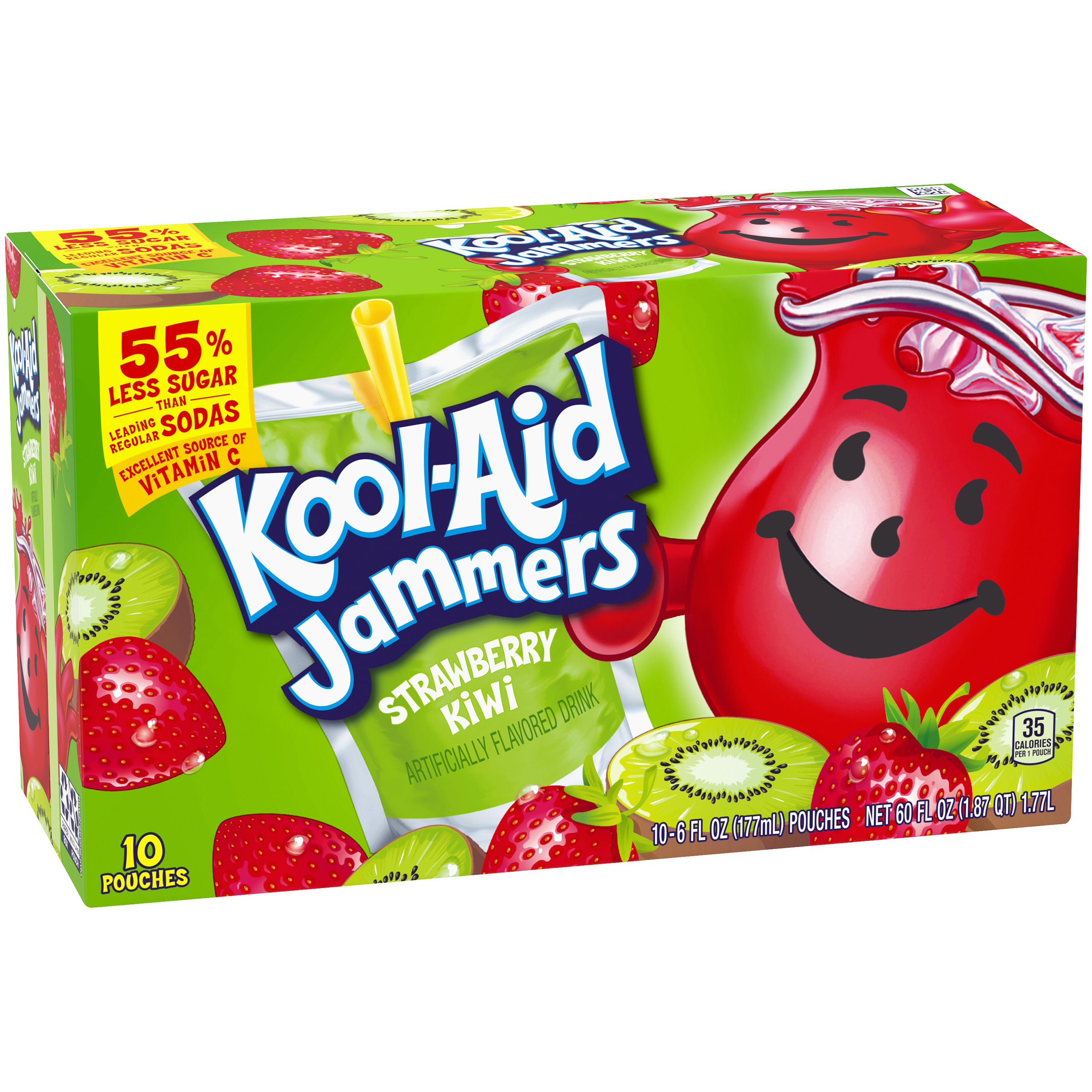 Kool Aid Jammers Strawberry Kiwi Artificially Flavored Soft Drink 10 Ct Box 6 Fl Oz Pouches Walmart Com Walmart Com