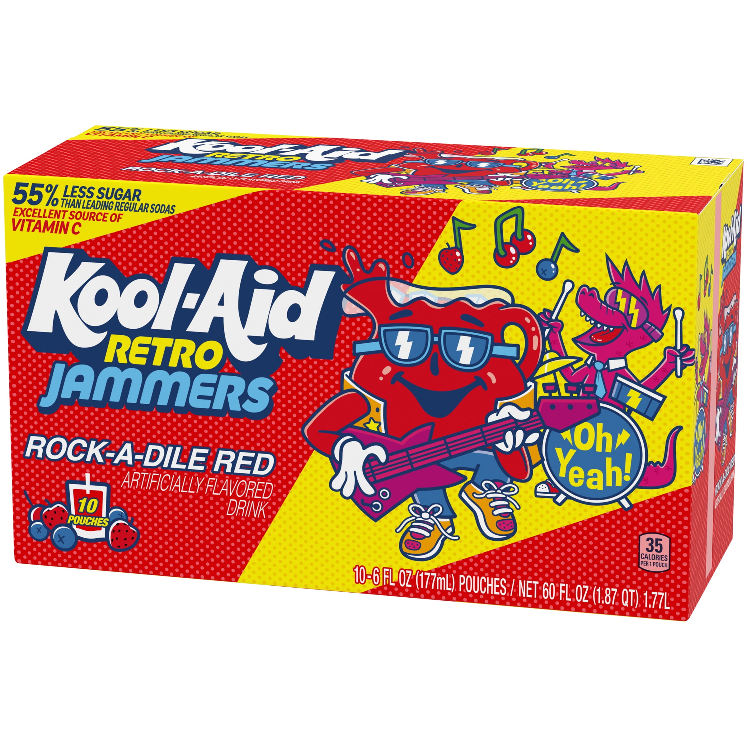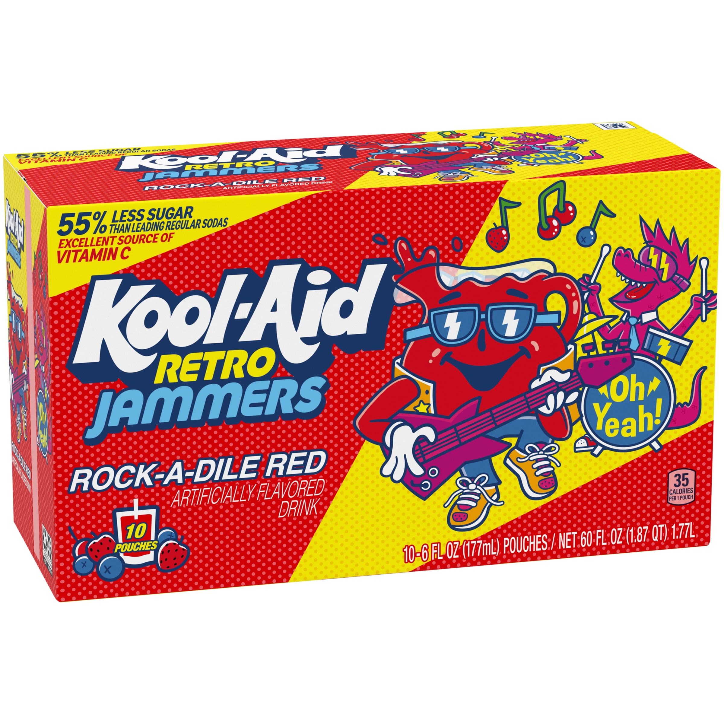 Kool Aid Retro Jammers Rock A Dile Red Mixed Berry Artificially Flavored Soft Drink 10 Ct Box 6 Fl Oz Pouches Walmart Com Walmart Com